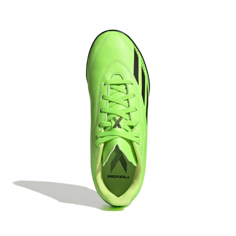 Tid og rom. Alt er relativt når du spiller i en helt annen dimensjon. Lukk opp døra for flerdimensjonal fart med adidas X Speedportal. Disse fotballskoene for juniorer er laget for raske manøvre, og banebrytende hurtighet på kunstgress. Den syntetiske overdelen er myk og slitesterk, og hjelper deg med å holde ballen under kontroll når kampen på banen blir intens.Overdelen er laget med en serie resirkulerte materialer, og består av 50 % resirkulert innhold. Dette produktet representerer bare én av løsningene våre på veien for å gjøre slutt på plastavfall.