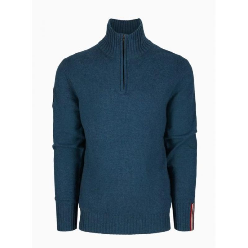 Nøye strikket i en myk blanding av merinoull, BCI bomull og nylon. Den er formet til en klassisk silhuett med en ribbet turtleneck og avsluttet med klassiske ribbekanter på ermene og nederst. Et must for ethvert sommereventyr.