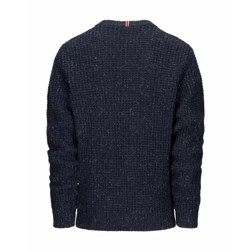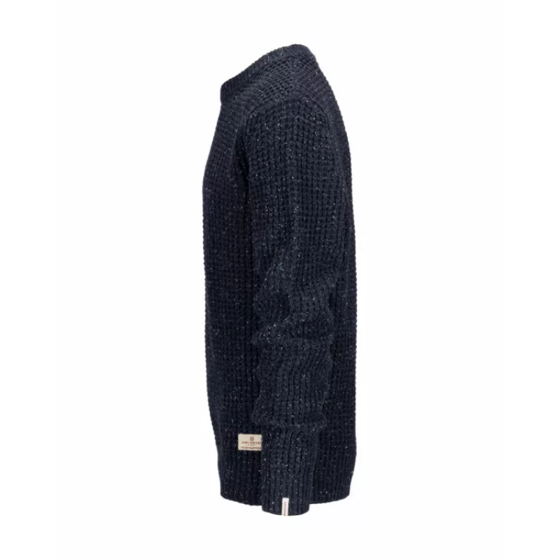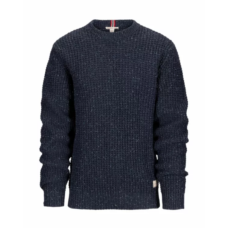 Strikk med elementer av myk blanding av bomull, lin og nylon. Frøsømmen gir denne genseren sin rike tekstur og vil føles luftig mot