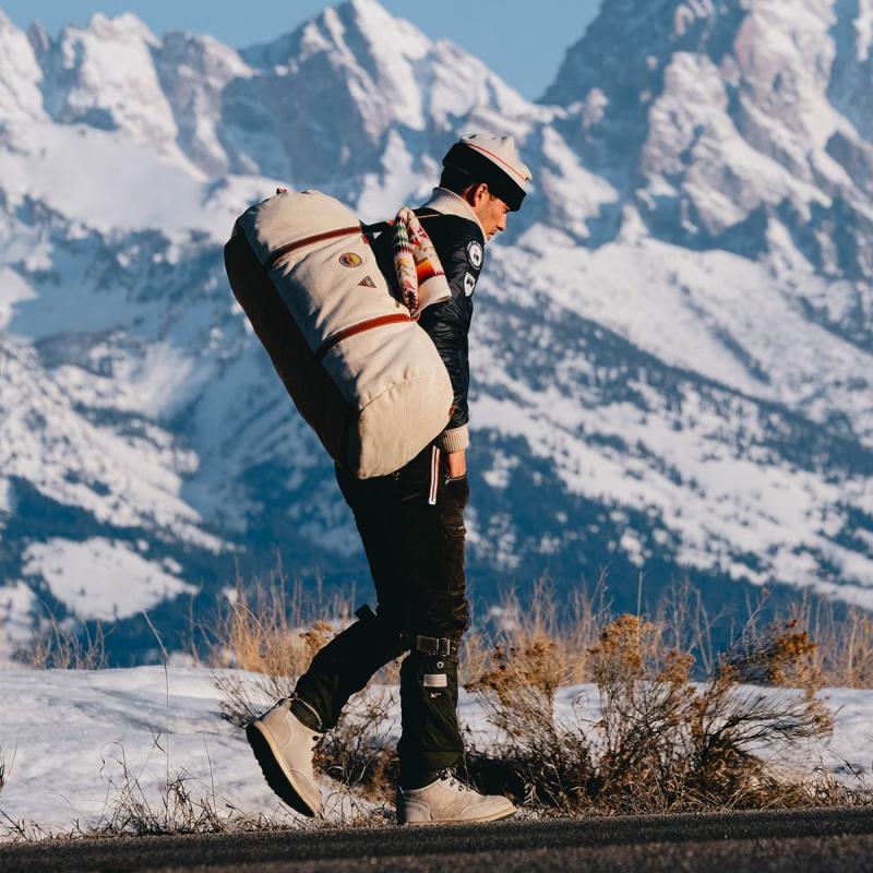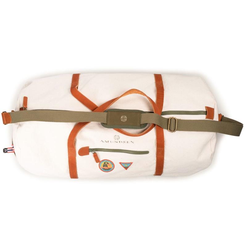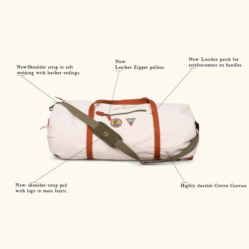 Vår største reiseveske er designet for å være holdbar og pålitelig for alle dine reiser. Den lange sylindriske formen og det myke lerretet gjør det tilpasningsdyktig for flyselskaper. Den justerbare skulderstroppen kan fjernes når du vil ha den for hånd. Syes forsiktig i en tøff bomullsduk, med lærgulv og håndtak. Har to utvendige oppbevaringslommer og en tradisjonell skistropp for å sikre sko eller våte klær utenfor vesken.