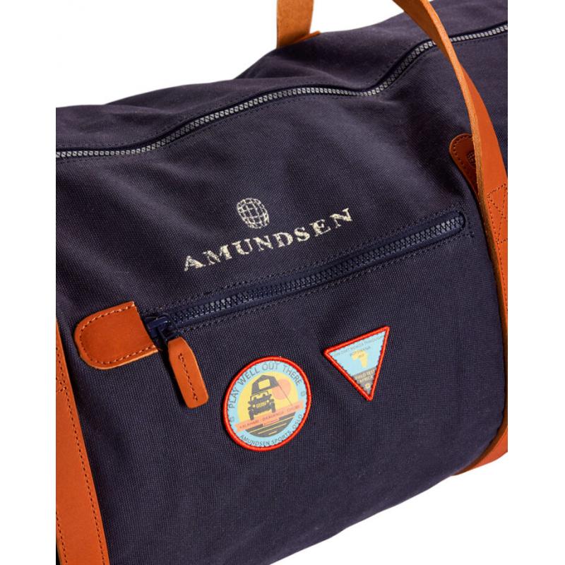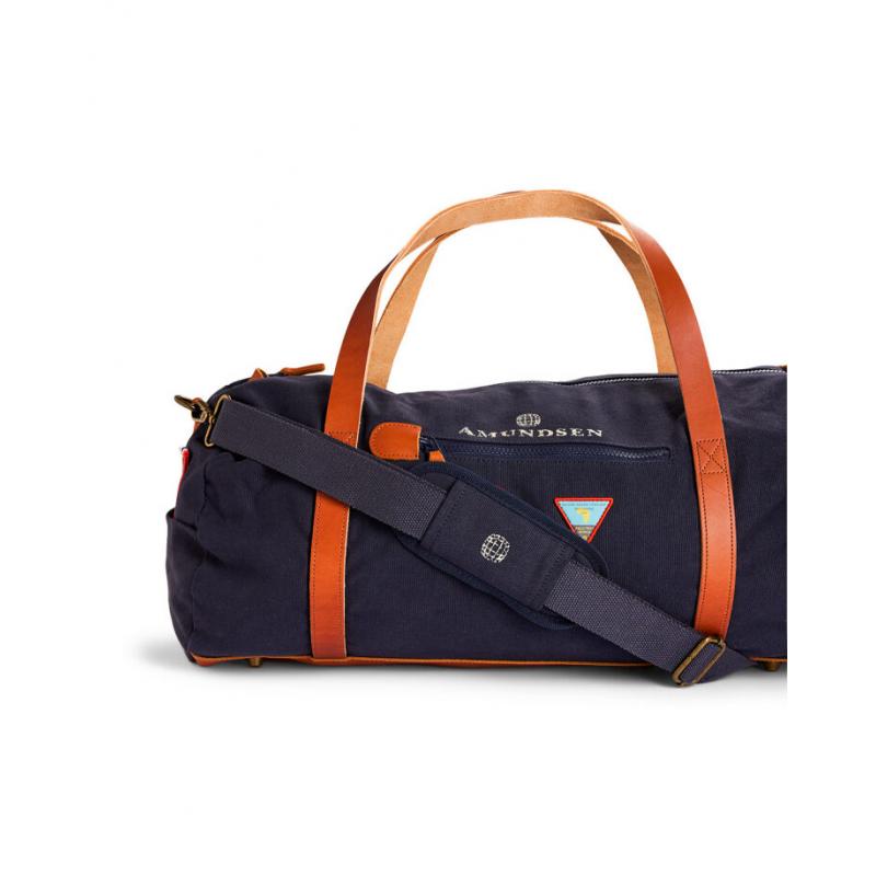 Vår største reiseveske er designet for å være holdbar og pålitelig for alle dine reiser. Den lange sylindriske formen og det myke lerretet gjør den tilpasningsdyktig for flyreiser. Justerbar skulderreim inkludert skulderreimpute med logo i hovedstoff kan tas av når du ønsker å bære den for hånd. Nøye sydd i et tøft bomullsduk, med skinngulv og håndtak. Har to utvendige oppbevaringslommer med glidelås i skinn. Tradisjonell skistropp for å feste sko eller våte ting utenfor vesken.