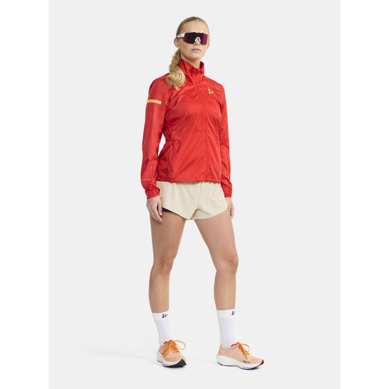 Løpejakken er laget av et mykt og lett ripstop-materiale som sørger for effektiv regulering av kroppstemperaturen under høyintensiv trening i vindfulle forhold. Jakken har ventilasjonsperforeringer i ryggen og under armene.