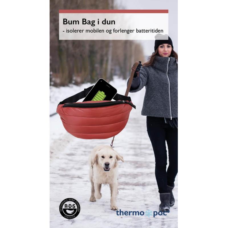 Thermopoc – Bum Bag i dun som forlenger batteritiden. Justertbart bærebelte for fleksibel bruk. God plass og flere glidelåslommer.