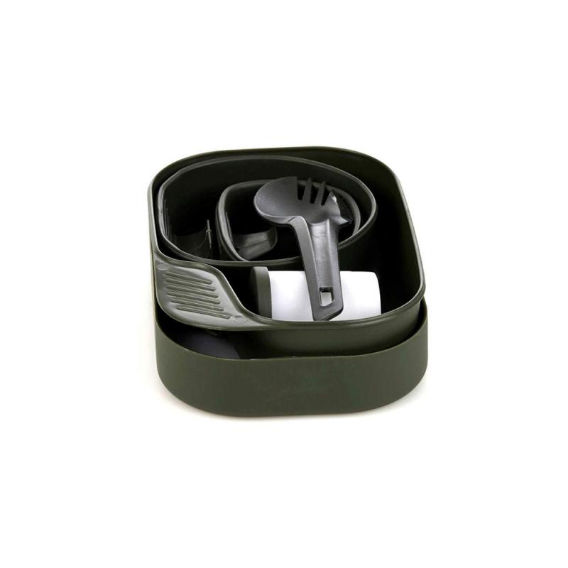 Fullt utstyrt. Inkluderer en plate med lokk. Fold-A-Cup® Big. Fold-A-Cup®. Skjærebrett. Shaker og Spork. Camp-A-Box® Complete er uten BPA