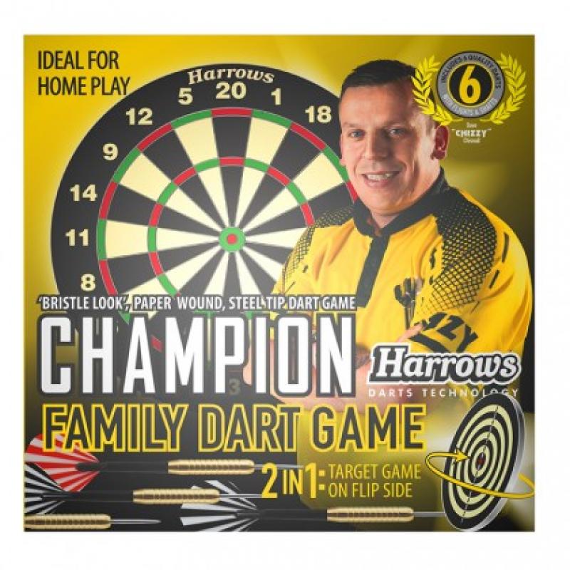 Harrows World Champion Family Darts gir mye moro for hele familien. Dartskiven er i offisiell størrelse og leveres komplett med 6 stk. 18 grams messingpiler. Target-spill på baksiden av platen.