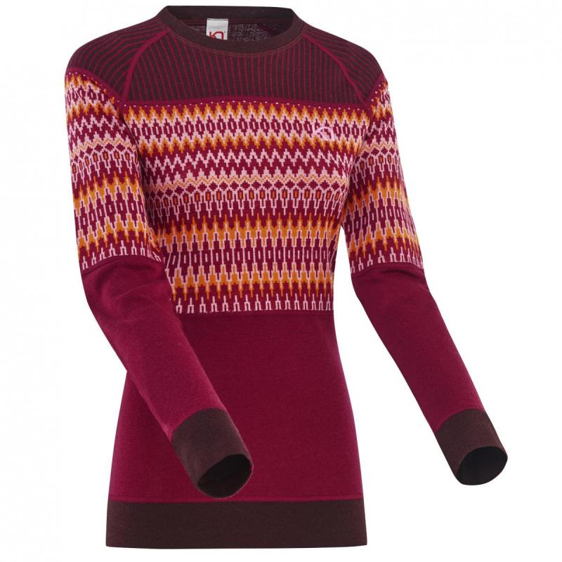 The Kari Traa Silja Long Sleeve is a merino baselayer whose luxurious softness keeps you warm and dry, even in the burliest conditions. The beautiful, geometric Scandinavian design is equal parts classic and contemporary. With a round neck and Jacquard knit, this beautiful baselayer is smooth against the skin and layers well.