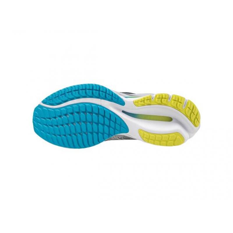 Mellomsålen har tykt lag med MIZUNO ENERZY-materiale. Dette gjør skoen mykere og mer komfortabel, noe du spesielt vil oppleve i forfot. Den bærekraftige PEBAX Wave-platen er forsterket på sidene for å oppnå den optimale stabilitet.