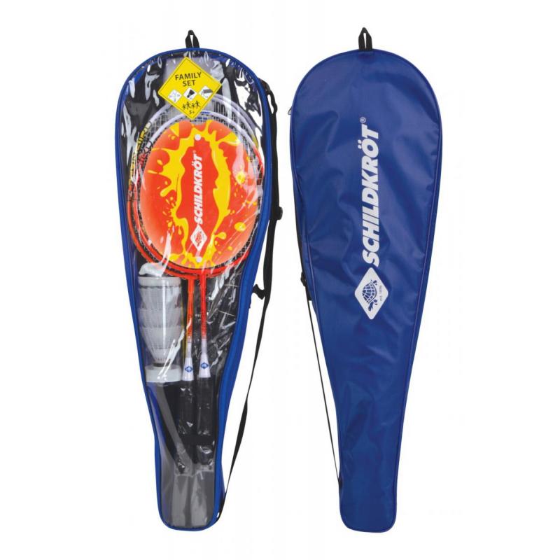 Komplett badmintonsett for familien! Innehold: To racketer i ordinær størrelse og to racketer i juniorstørrelse. – Tube med tre badmintonballer – Høydejusterbart badmintonnett – Praktisk bæreveske med skulderstropp