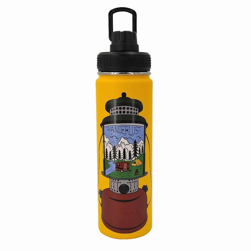 Dette er en robust drikkeflaske produsert i rustfritt stål, med pulverlakkert overflate som gir et sikkert grep.