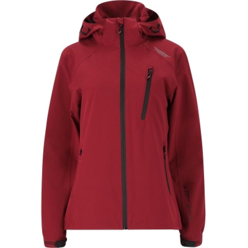 Camilla W AWA W-Pro1500 er en enkel og fin regnjakke.Jakken er designet med avtagbar hette med mulighet for justering både i nakken og nederst. På fronten er modellen utstyrt med gjennomgående glidelås med hakebeskyttelse. Slik at det ikke skal komme noe vann inn i jakken. På håndleddene er den utstyrt med en tettsittende elastisk ende og borrelåsjustering, i nedre del av jakken er det justerbar elastisk snor.